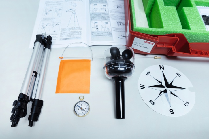 1 Windmessgerät (Anemometer), 5 beschreibbare Kunststoffplatten mit Klettpunkten