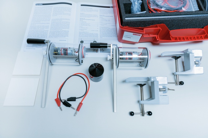 Das Demo-Set DynaMot ist ein Demonstrationsgerätesatz zur Durchführung von Lehrerversuchen mit dem handbetriebenen Generator DynaMot (CE). Der Generator kann sowohl als Gleichspannungsgenerator als auch als Gleichstrommotor eingesetzt werden und eignet sich für den einführenden Elektrikunterricht als Alternative zu Batterien oder Stromversorgungsgeräten.